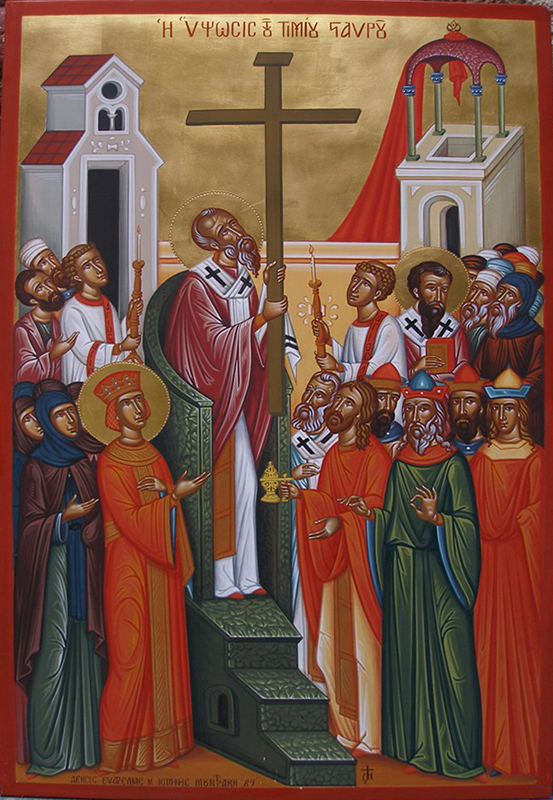 Κατά την παράδοση, οι κάτοικοι των Απολλώνων συνάντησαν την Αγία Ελένη όταν αυτή επέστρεφε από τους Αγίους Τόπους μετά την ανεύρεση του Τιμίου Σταυρού και την παρακάλεσαν να τους δώσει τμήμα του, ώστε να σταματήσουν τα κακά που συνέβαιναν στο χωριό τους. Επιστρέφοντας στο χωριό τους με πολλή χαρά, έκαναν δεήσεις ευχαριστίας και ολονύκτιες προσευχές, έκτισαν ναό αφιερωμένο στον Τίμιο Σταυρό και φύλαξαν το τμήμα του Τιμίου Ξύλου σε ξυλόγλυπτο.