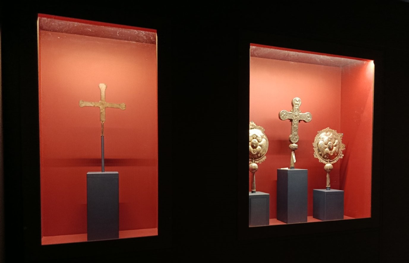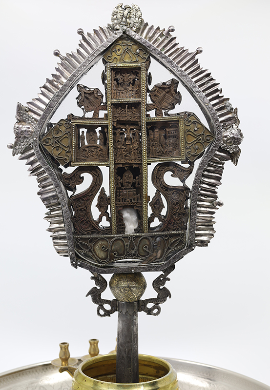 Με αφορμή αυτό το σημαντικό κειμήλιο της συλλογής παρουσιάζεται επίσης η εποχή κατά την οποία έγινε η Σταύρωση του Χριστού και η εύρεση του Τιμίου Σταυρού από την Αγία Ελένη, αλλά και η επίσκεψή της στη Ρόδο κατά την επιστροφή της στα Ιεροσόλυμα. Ακόμη, δίνονται πληροφορίες για τους τύπους σταυρών σε σχέση με τη χρήση και το σχήμα τους, και εκτίθενται δύο τύποι σταυρού – κοσμήματος που έχουν δημιουργηθεί από Ροδίτικα εργαστήρια.